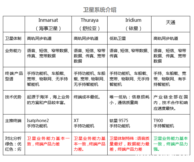 卫星移动通信系统对比分析