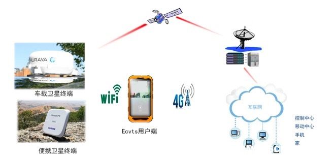通过络覆盖全中国卫星网,在偏远地区或地面有线、无线网络受限制的地区,在指挥车中可以通过连接地球同步通信卫星接入公众通信网进行动中通,静中通,安装Ecvts通信系统以后,在车上/野外就在像办公司一样便捷。语音通话,直接通过卫星实现高速数据传输,GPS定位功能,可跟踪。在车辆无法到达的地区,应急人员可携带功能一样的便携设备前往现场。(便携卫星电话与车载是同系统,分离单独使用)