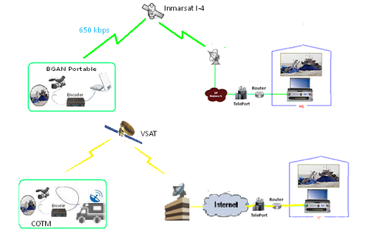 【2.3】每个现场信道回传650 Kbps,BGAN-HDR技术整合卫星专网优化链路设计。