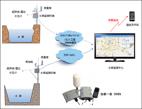 RY5000i 是专门为水库应用设计的,集卫星通话、卫星数据传输、卫星传真的卫星通讯终端。具有抗恶劣环境、价格便宜、易于安装、用户界面友好等特点。通过卫星网络,可以在无地面网络时,水库管理人员与外界的固定电话、移动电话以及其他卫星电话进行语音通话,通过卫星数据传输功能,可以在地面有线或无线通信无法进行覆盖或者是在重大洪水发生时已经完全将其破坏时,“水库无线监控系统”还能正常工作。